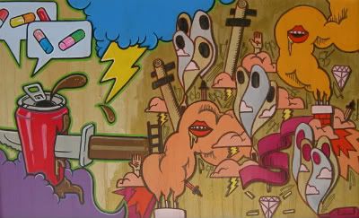 Well I lost my camera on a bike ride Sunday, I did finish 3 paintings in the last few days.... but I have no way to photograph them. So I just thought I would post another Colab piece with Mr. Woodward and myself.